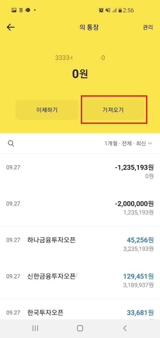 그 후 가져오기 기능이용하여 오픈뱅킹을 연결하시면 됩니다. 오픈뱅킹 연결 후 증권계좌를 선택하여 잔액을 가져오시면 됩니다. 저도 위처럼 오픈뱅킹을 통해 공모주 매각금액을 회수하고 재투자하고 있습니다.